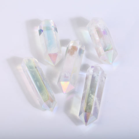 These 60g Angel Aura Double Points (6-12cm) have been transformed into iridescent messengers through sacred metal alchemy. Each termination acts as a separate antenna - one receiving celestial guidance, the other transmitting your prayers - creating the ultimate two-way communication device with the angelic realm.