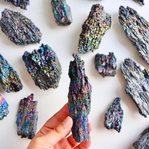 "Where alchemy meets geology – a metallic rainbow frozen in mineral time."