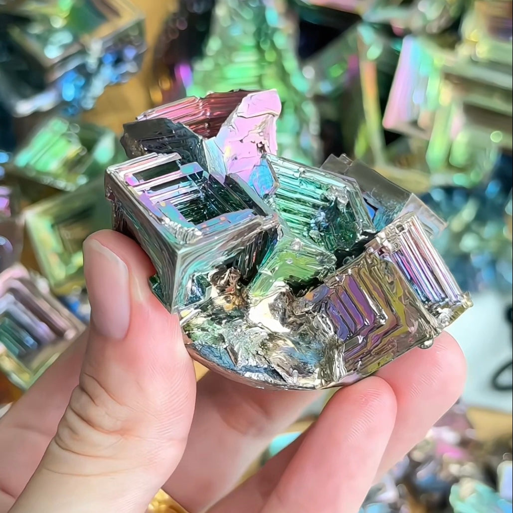 Hold a fragment of interdimensional geometry with this Bismuth Specimen—a 200g (3-6cm) lab-grown metallic crystal showcasing iridescent stair-step formations in hypnotic rainbow hues. This otherworldly mineral acts as a portal opener, alchemical transformer, and high-vibration decor piece for science lovers and energy workers alike.