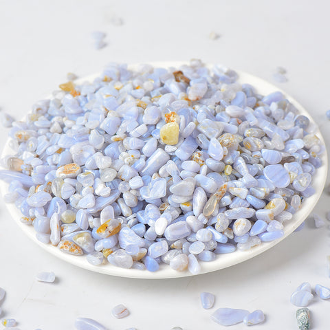 Each blue lace agate chip (0.3g, 5-10mm) displays delicate cerulean bands resembling gentle waves frozen in stone. These calming fragments carry the full peace-bringing, communication-enhancing, and stress-relieving properties of blue lace agate in perfectly portable portions.