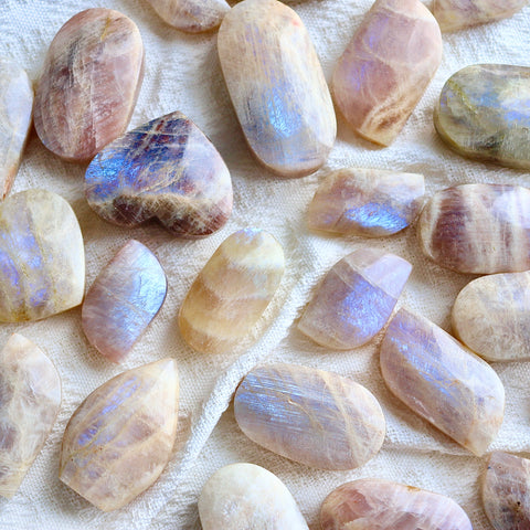 Hold moonlight in your hands with this White Moonstone Palm Stone, a smooth 70g (5-7cm) disc polished to reveal mesmerizing blue adularescence that glides across its milky surface like celestial waves. Perfect for meditation, emotional balance, and enhancing feminine energy.