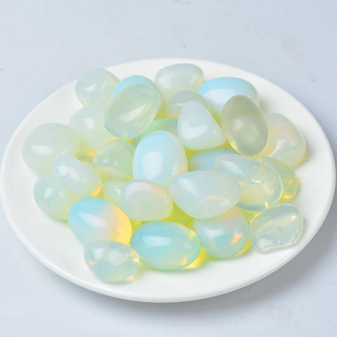 These ethereal White Opalite Tumbles (30g, 2-3cm) shimmer with an otherworldly luminescence, their milky-white bodies diffusing light like frosted glass under moonlight. Each one is a portable piece of celestial magic.