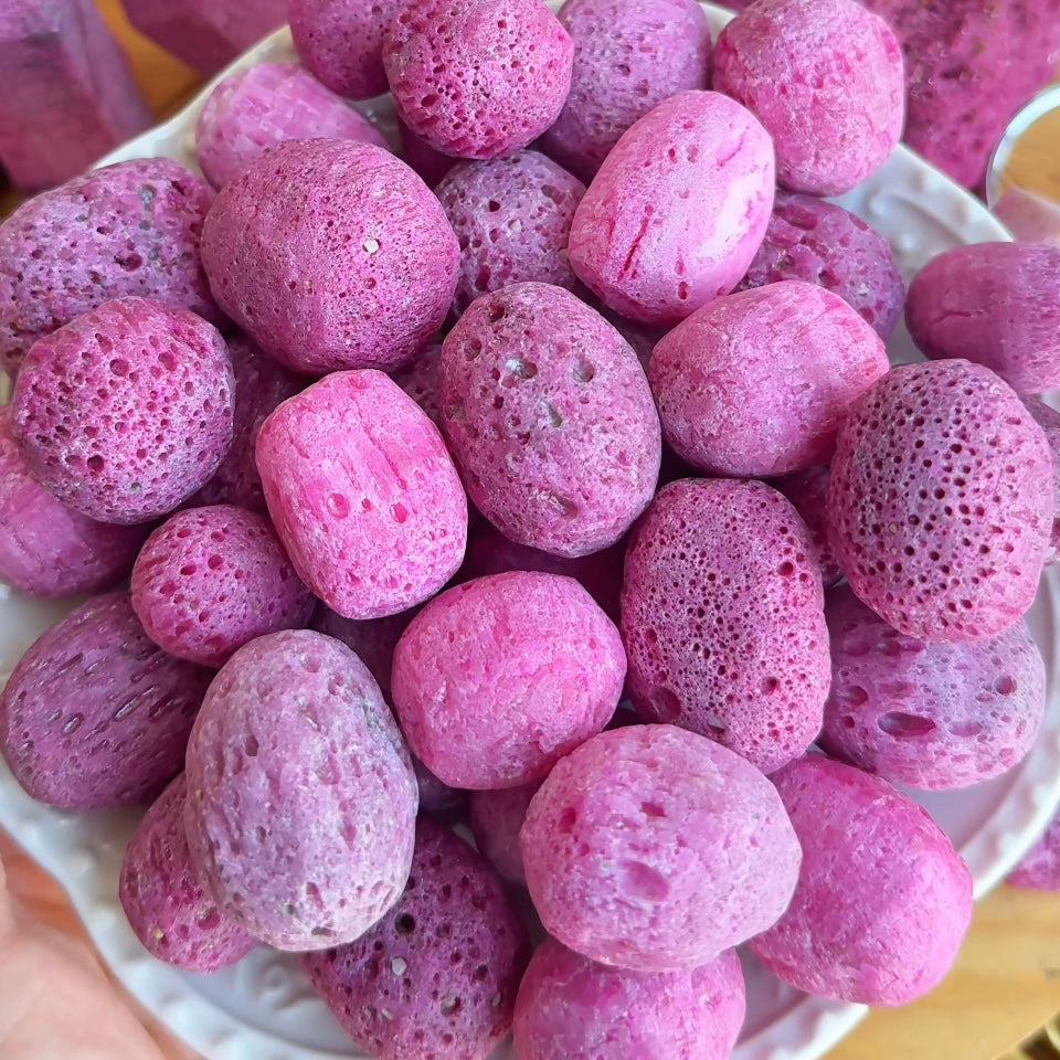 Capture the essence of liquid sunlight with these Honeycomb Ruby Tumbles—30g (1-3cm) natural corundum fragments showcasing warm pinkish-red hues and intricate hexagonal cellular patterns. These energizing pocket stones activate sacral and root chakras, fueling creative fire, physical stamina, and courageous self-expression.