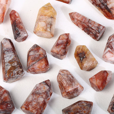 Standing at 5-10cm with a potent 60g density, this Fire Quartz Tower channels raw solar energy through its iron-rich crystalline structure. Natural hematite inclusions create swirling galaxies of crimson and gold within the quartz, forming a power conductor for courage, vitality, and unstoppable manifestation.