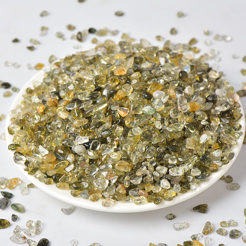 Each green rutile chip (0.3g, 5-10mm) contains mesmerizing golden needles suspended in emerald depths, resembling celestial maps. These rare fragments channel divine connection, amplified manifestation, and spiritual awakening through their unique crystalline structure.